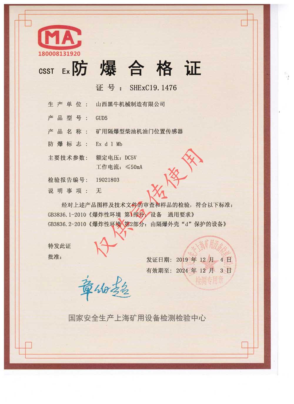 礦用隔爆型柴油機(jī)油門位置傳感器