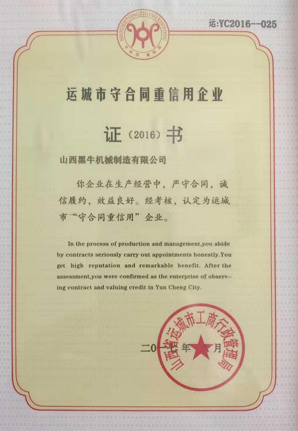 運城市守合同重信用企業(yè)